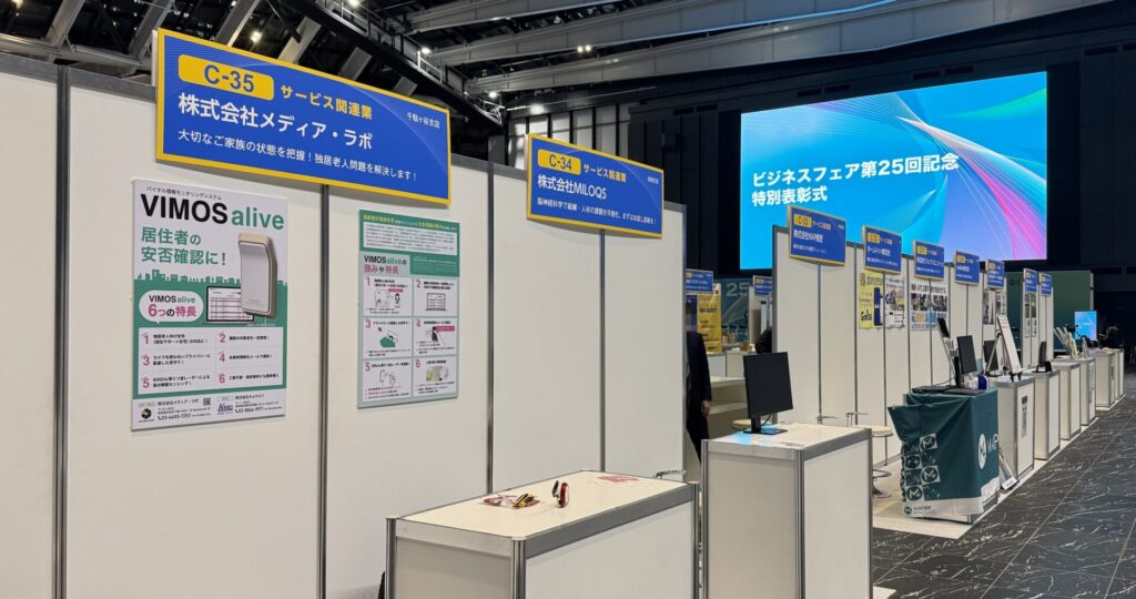 11月26日(水)、新宿住友ビル・三角広場で開催された西武信用金庫「第25回ビジネスフェア」に出展し、バイタル情報モニタリングシステム「VIMOS alive」を紹介しました。